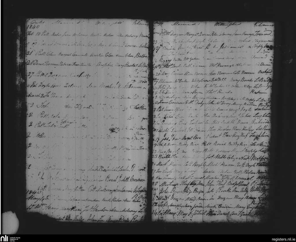 Leighlinbridge; County of Carlow, Laois; Diocese of Kildare and Leighlin. Marriages, Feb. 1840 to Nov. 1840