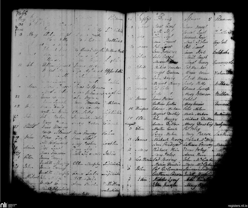 Leighlinbridge; County of Carlow, Laois; Diocese of Kildare and Leighlin. Baptisms, May 1845 to Aug. 1845