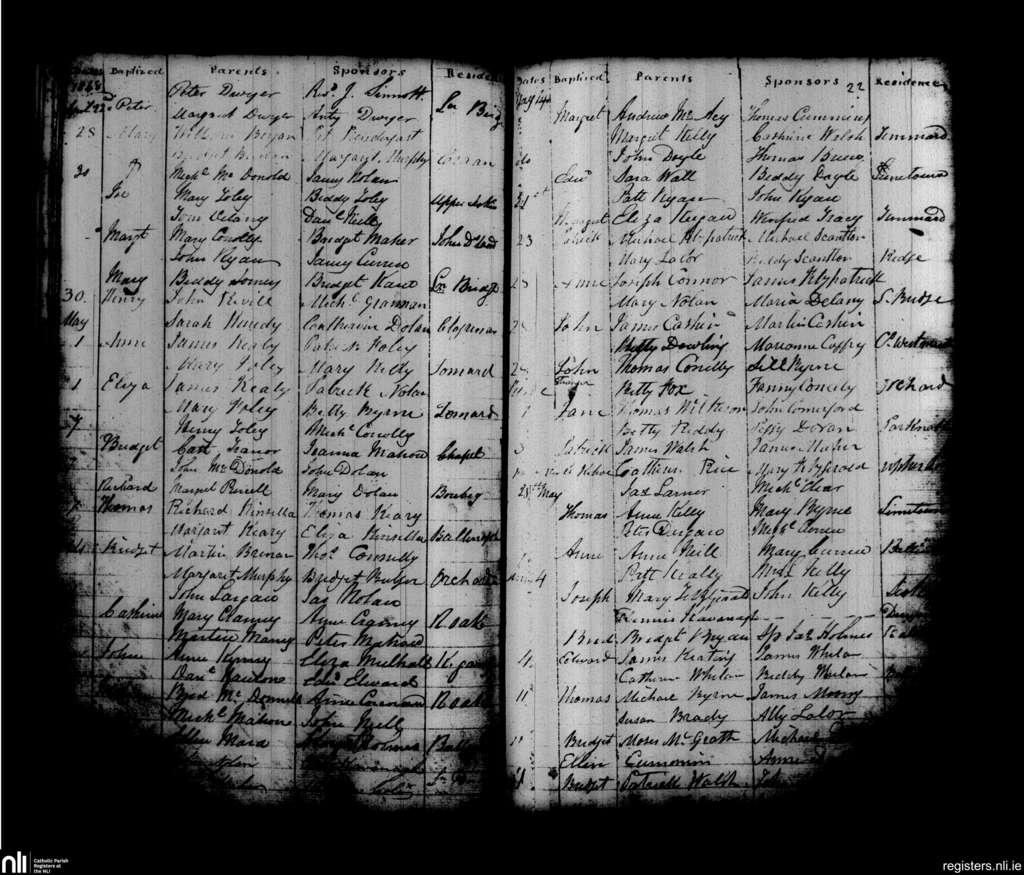 Leighlinbridge; County of Carlow, Laois; Diocese of Kildare and Leighlin. Baptisms, Apr. 1848 to July 1848