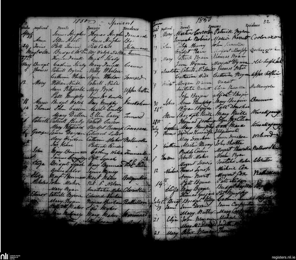 Leighlinbridge; County of Carlow, Laois; Diocese of Kildare and Leighlin. Baptisms, Apr. 1850 to July 1850