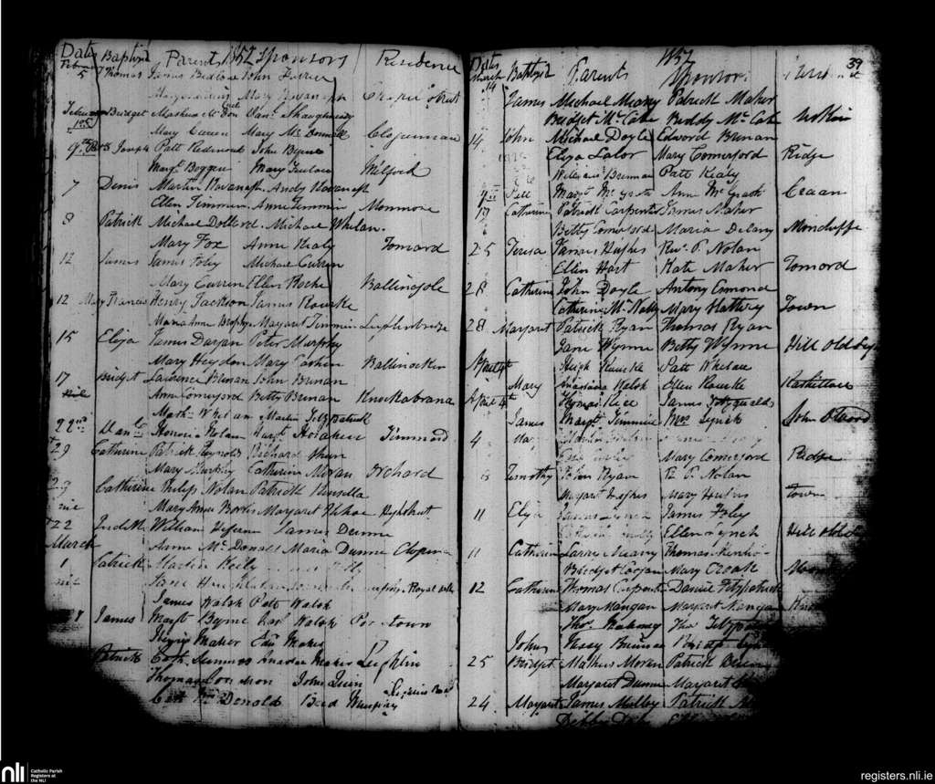 Leighlinbridge; County of Carlow, Laois; Diocese of Kildare and Leighlin. Baptisms, Feb. 1852 to Apr. 1852