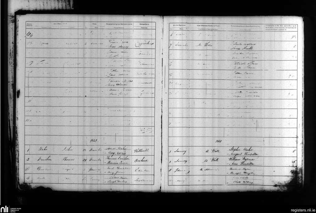 Leighlinbridge; County of Laois, Carlow; Diocese of Kildare and Leighlin. Baptisms, Nov. 1868 to Jan. 1869