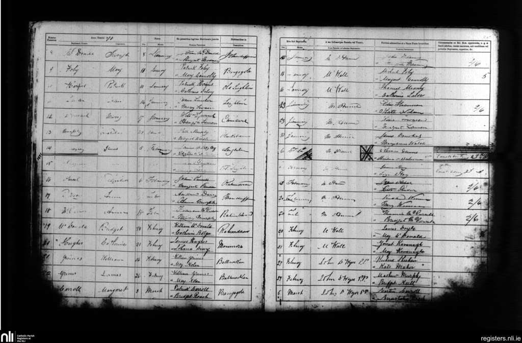 Leighlinbridge; County of Laois, Carlow; Diocese of Kildare and Leighlin. Baptisms, Jan. 1870 to Mar. 1870