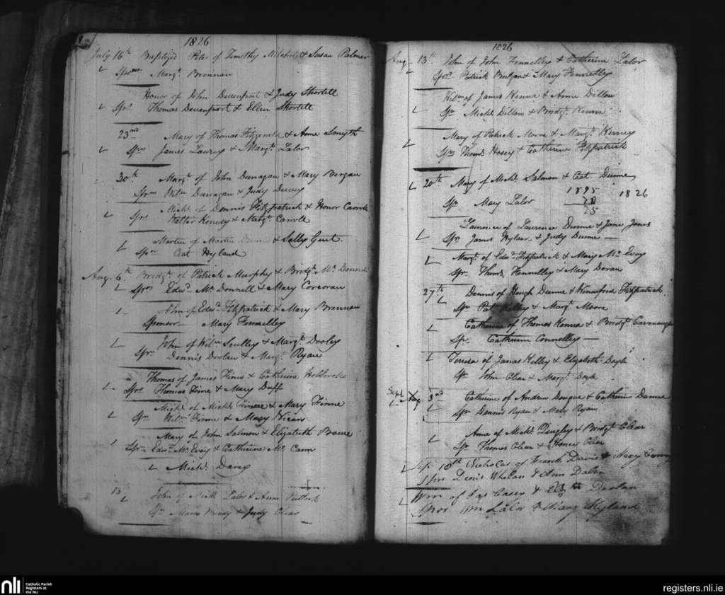 Maryborough; County of Laois; Diocese of Kildare and Leighlin. Baptisms, July 1826 to Sep. 1826