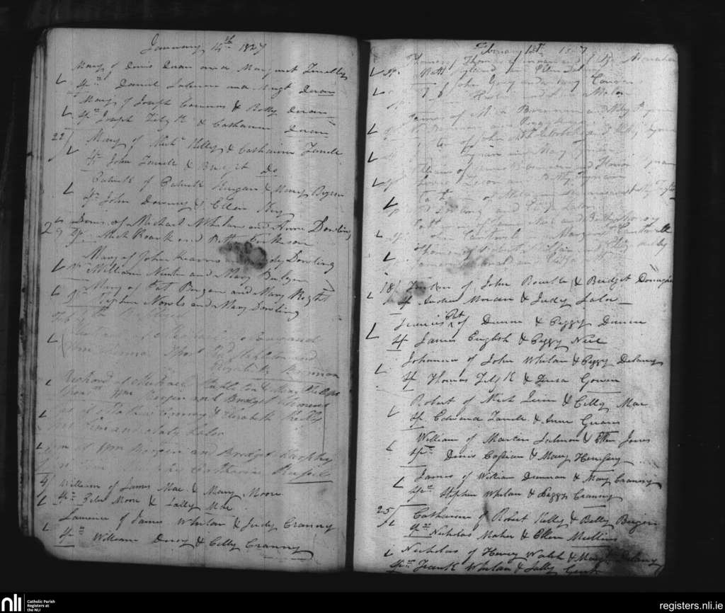 Maryborough; County of Laois; Diocese of Kildare and Leighlin. Baptisms, Jan. 1827 to Feb. 1827