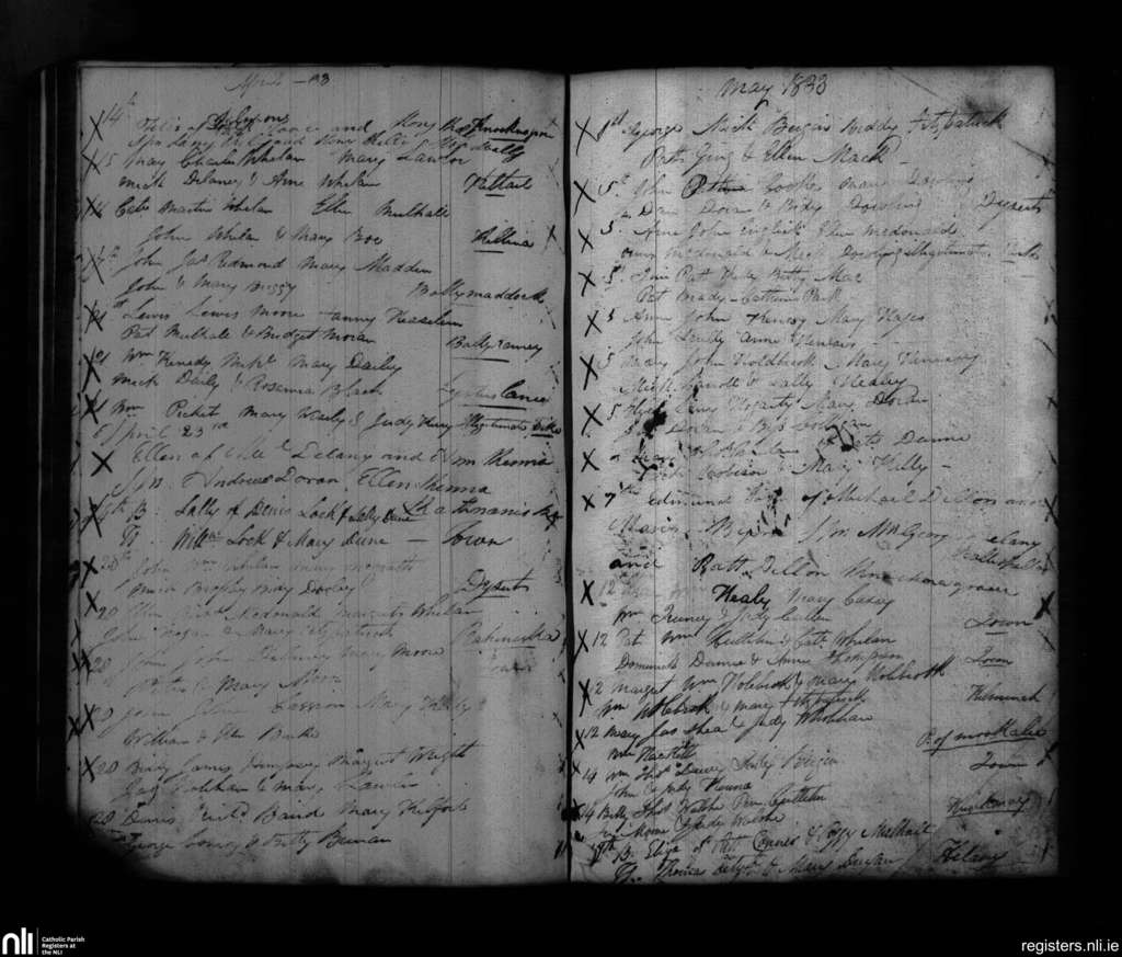 Maryborough; County of Laois; Diocese of Kildare and Leighlin. Baptisms, Apr. 1833 to May 1833