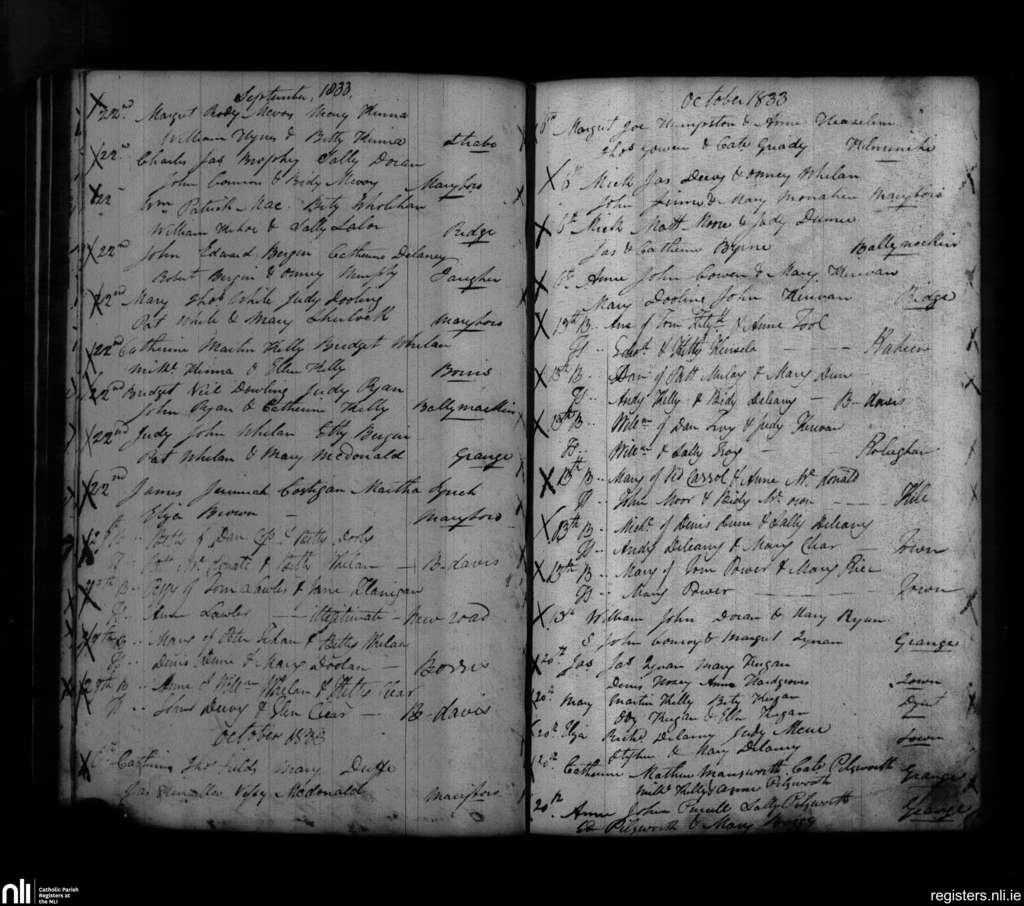 Maryborough; County of Laois; Diocese of Kildare and Leighlin. Baptisms, Sep. 1833 to Oct. 1833