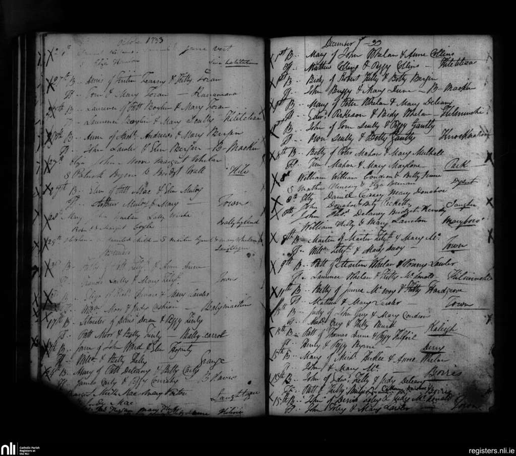 Maryborough; County of Laois; Diocese of Kildare and Leighlin. Baptisms, Oct. 1833 to Dec. 1833