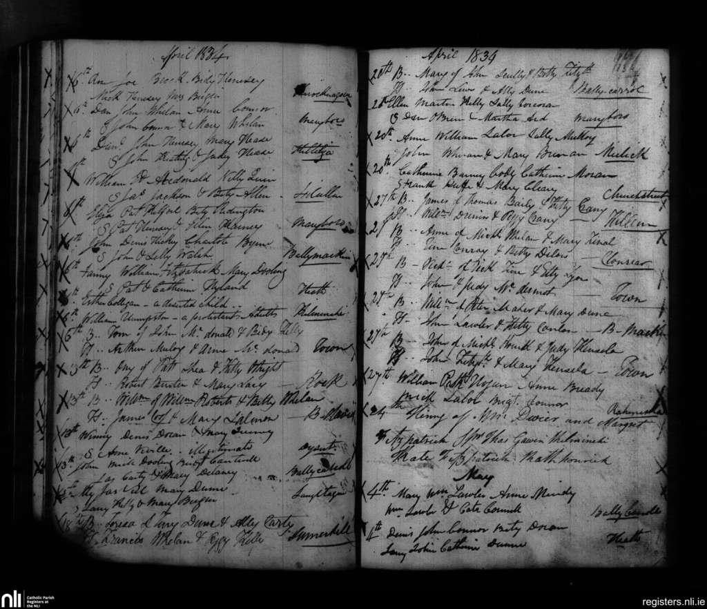 Maryborough; County of Laois; Diocese of Kildare and Leighlin. Baptisms, Apr. 1834 to May 1834