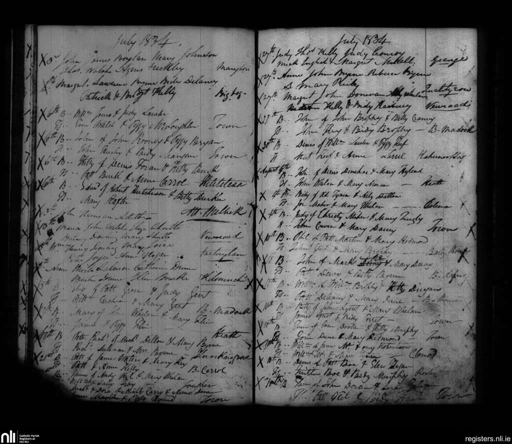 Maryborough; County of Laois; Diocese of Kildare and Leighlin. Baptisms, July 1834 to Aug. 1834