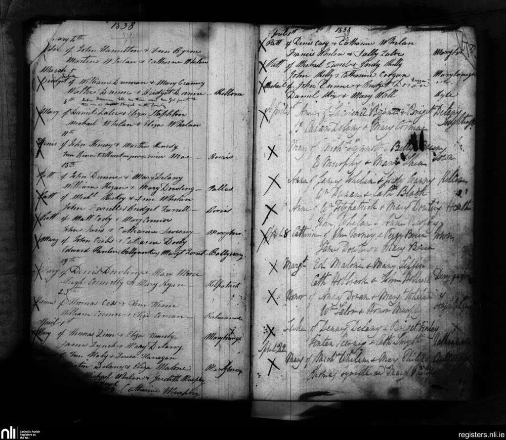 Maryborough; County of Laois; Diocese of Kildare and Leighlin. Baptisms, Feb. 1838 to Apr. 1838