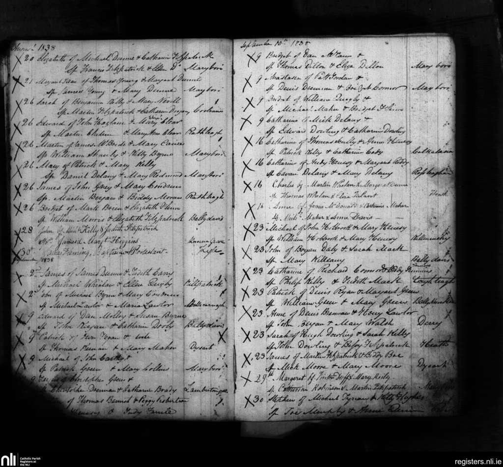 Maryborough; County of Laois; Diocese of Kildare and Leighlin. Baptisms, Aug. 1838 to Sep. 1838
