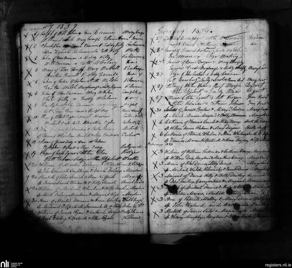 Maryborough; County of Laois; Diocese of Kildare and Leighlin. Baptisms, Dec. 1838 to Feb. 1839