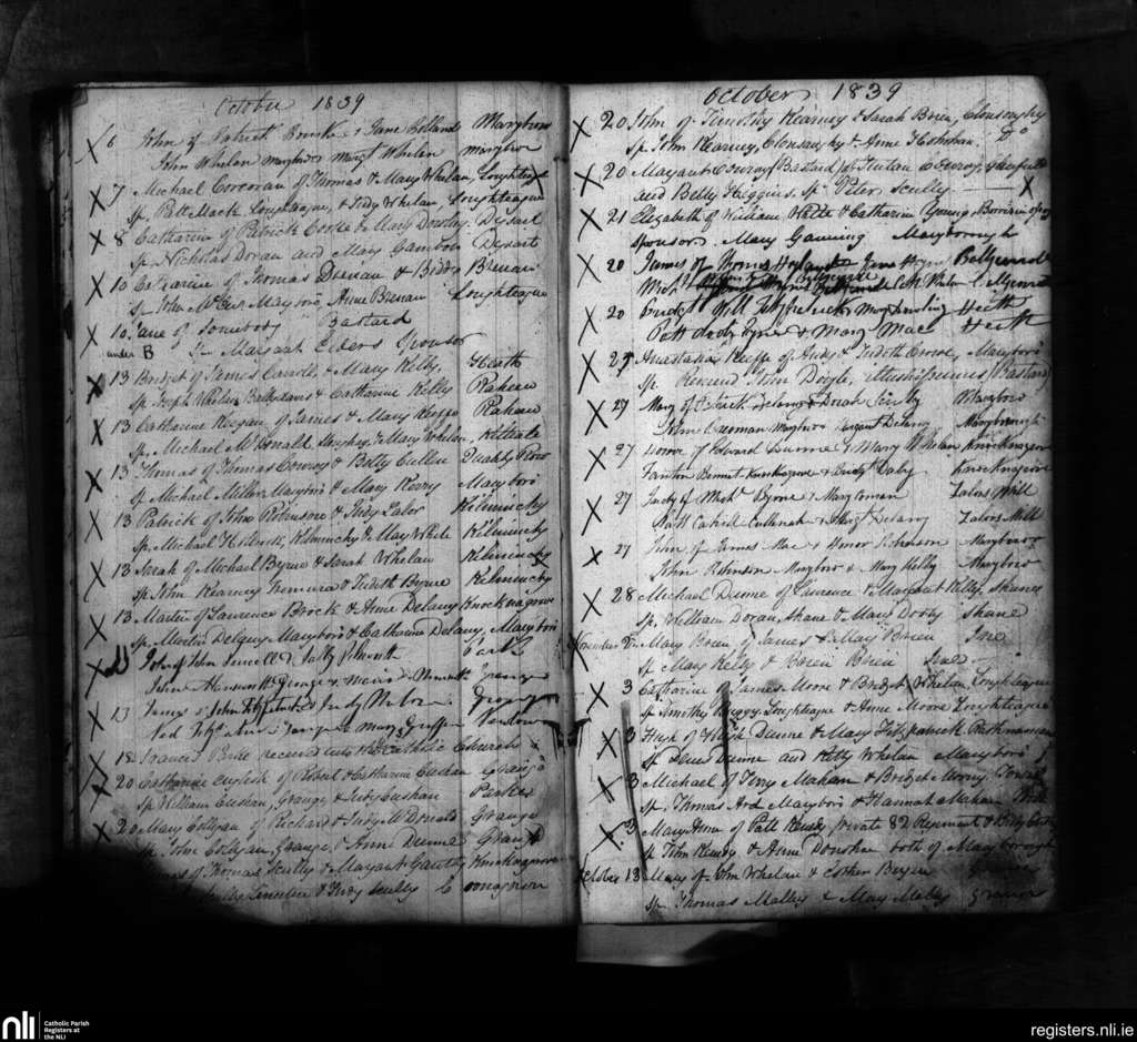 Maryborough; County of Laois; Diocese of Kildare and Leighlin. Baptisms, Oct. 1839 to Nov. 1839