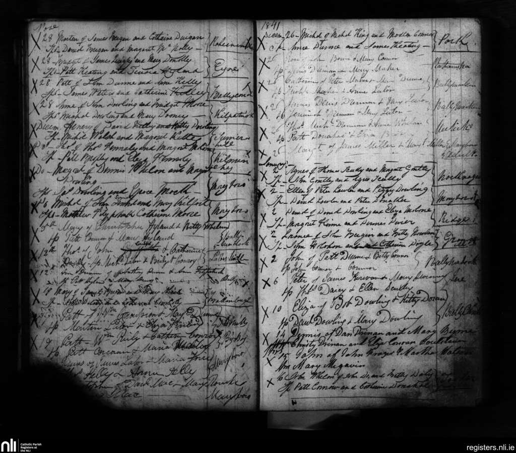Maryborough; County of Laois; Diocese of Kildare and Leighlin. Baptisms, Nov. 1841 to Jan. 1842