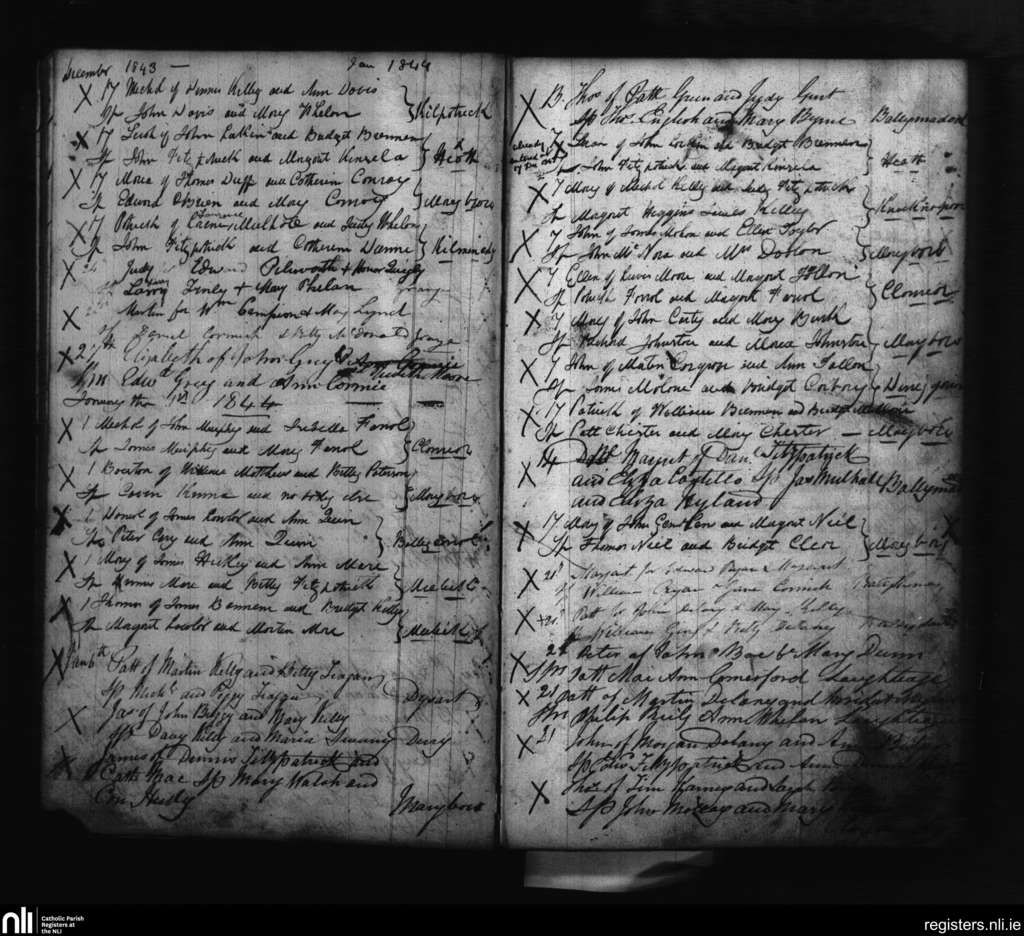 Maryborough; County of Laois; Diocese of Kildare and Leighlin. Baptisms, Dec. 1843 to Jan. 1844