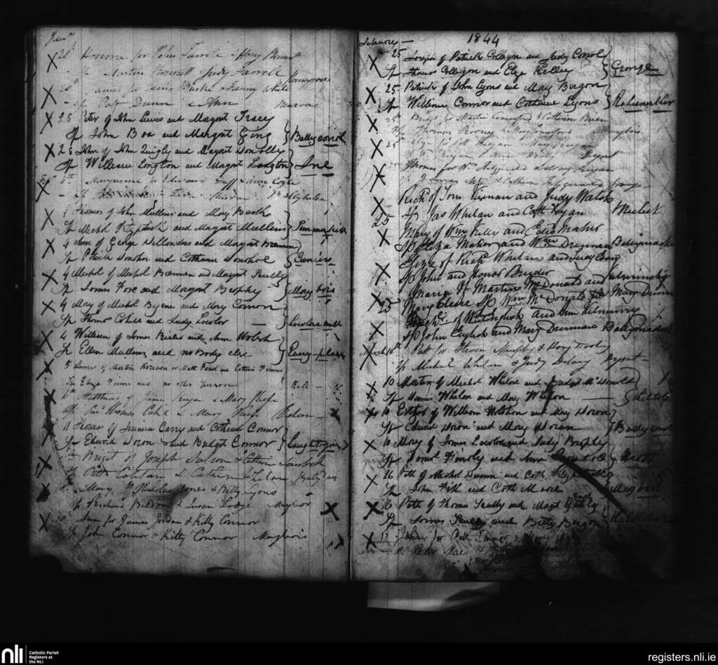 Maryborough; County of Laois; Diocese of Kildare and Leighlin. Baptisms, Jan. 1844 to Mar. 1844