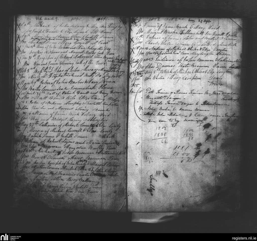 Maryborough; County of Laois; Diocese of Kildare and Leighlin. Baptisms, Oct. 1850 to Apr. 1855