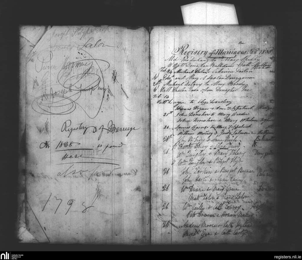 Maryborough; County of Laois; Diocese of Kildare and Leighlin. Marriages, Jan. 1838 to Feb. 1838