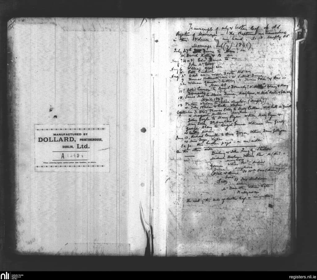 Maryborough; County of Laois; Diocese of Kildare and Leighlin. Marriages, July 1846 to Sep. 1847