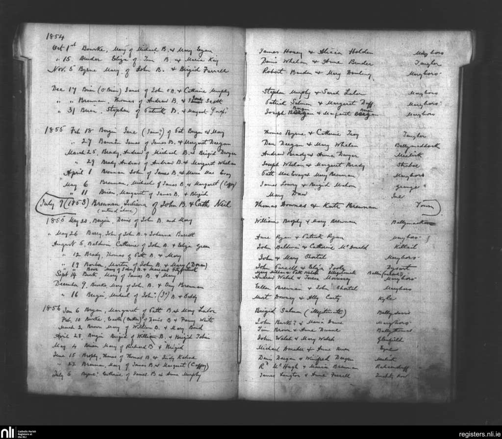 Maryborough; County of Laois; Diocese of Kildare and Leighlin. Baptisms, July 1853 to July 1856