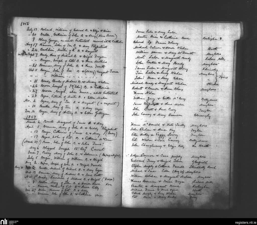 Maryborough; County of Laois; Diocese of Kildare and Leighlin. Baptisms, July 1856 to Dec. 1857
