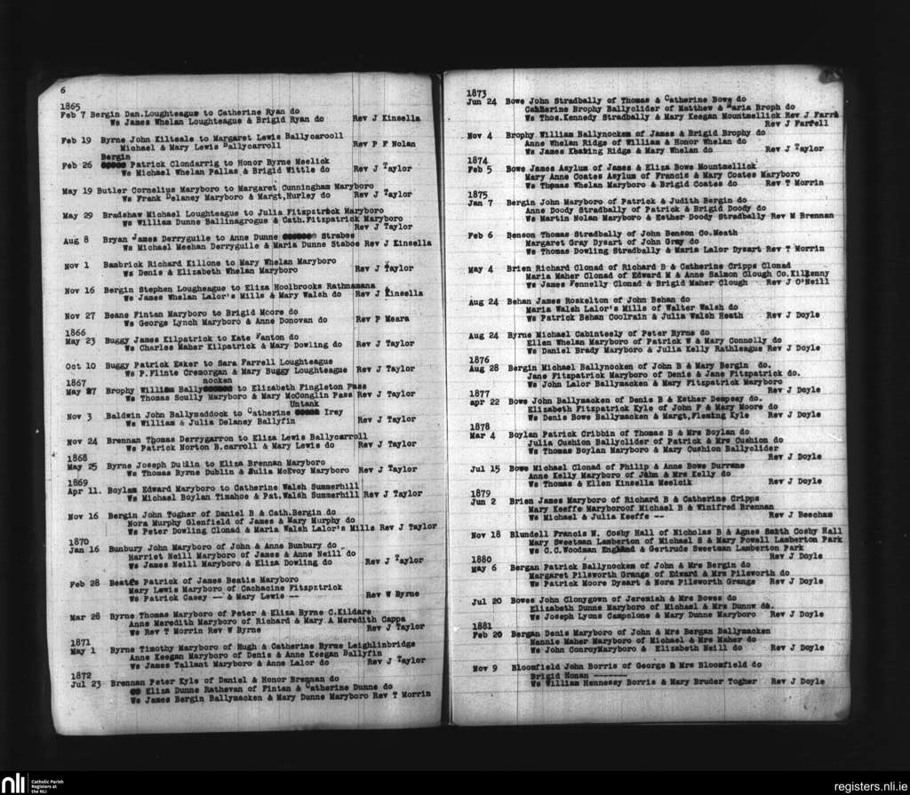 Maryborough; County of Laois; Diocese of Kildare and Leighlin. Marriages, Feb. 1865 to Nov. 1881