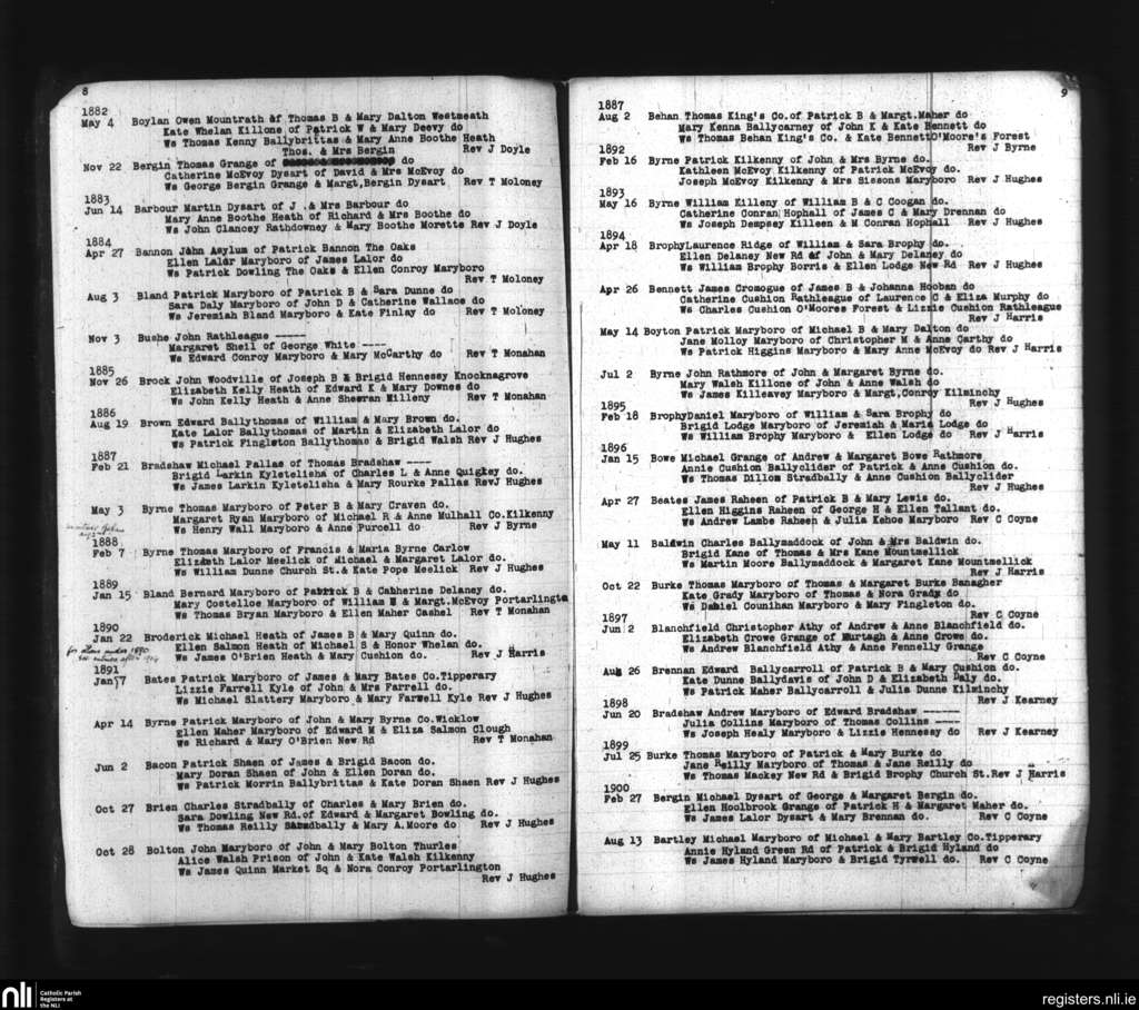 Maryborough; County of Laois; Diocese of Kildare and Leighlin. Marriages, Apr. 1861 to Aug. 1900