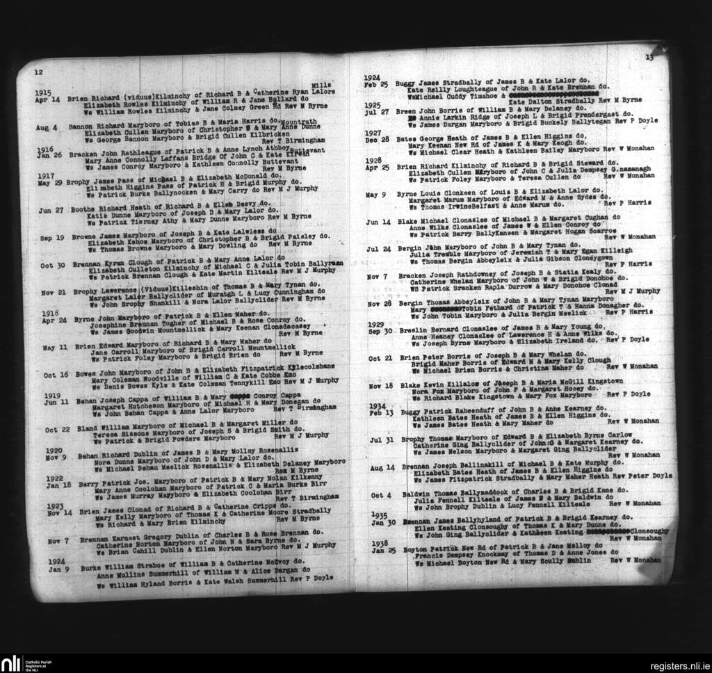 Maryborough; County of Laois; Diocese of Kildare and Leighlin. Marriages, Apr. 1915 to Jan. 1938