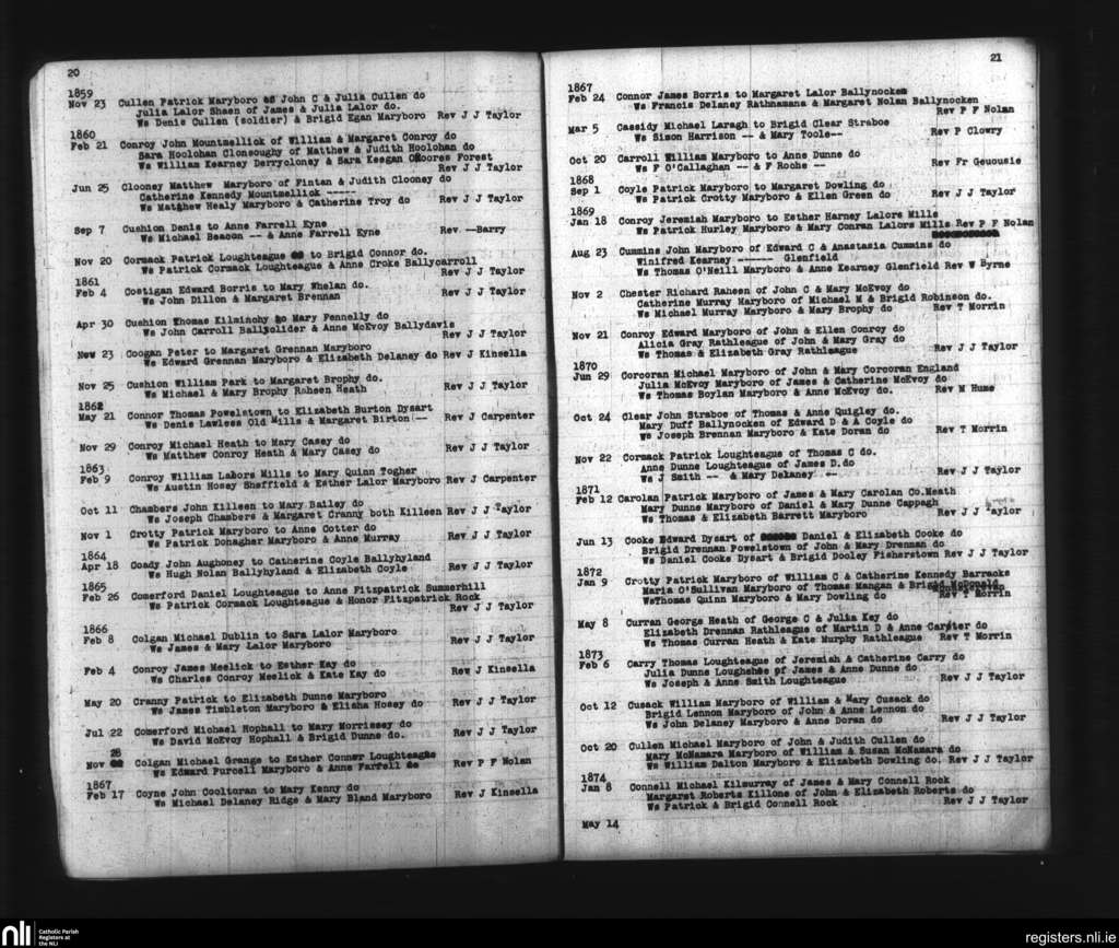Maryborough; County of Laois; Diocese of Kildare and Leighlin. Marriages, Nov. 1859 to Jan. 1874