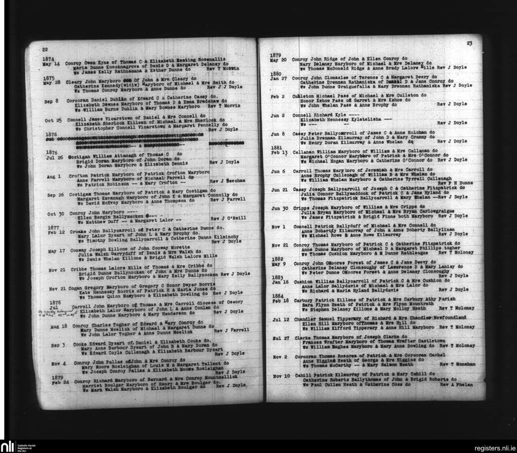 Maryborough; County of Laois; Diocese of Kildare and Leighlin. Marriages, May 1874 to Nov. 1884