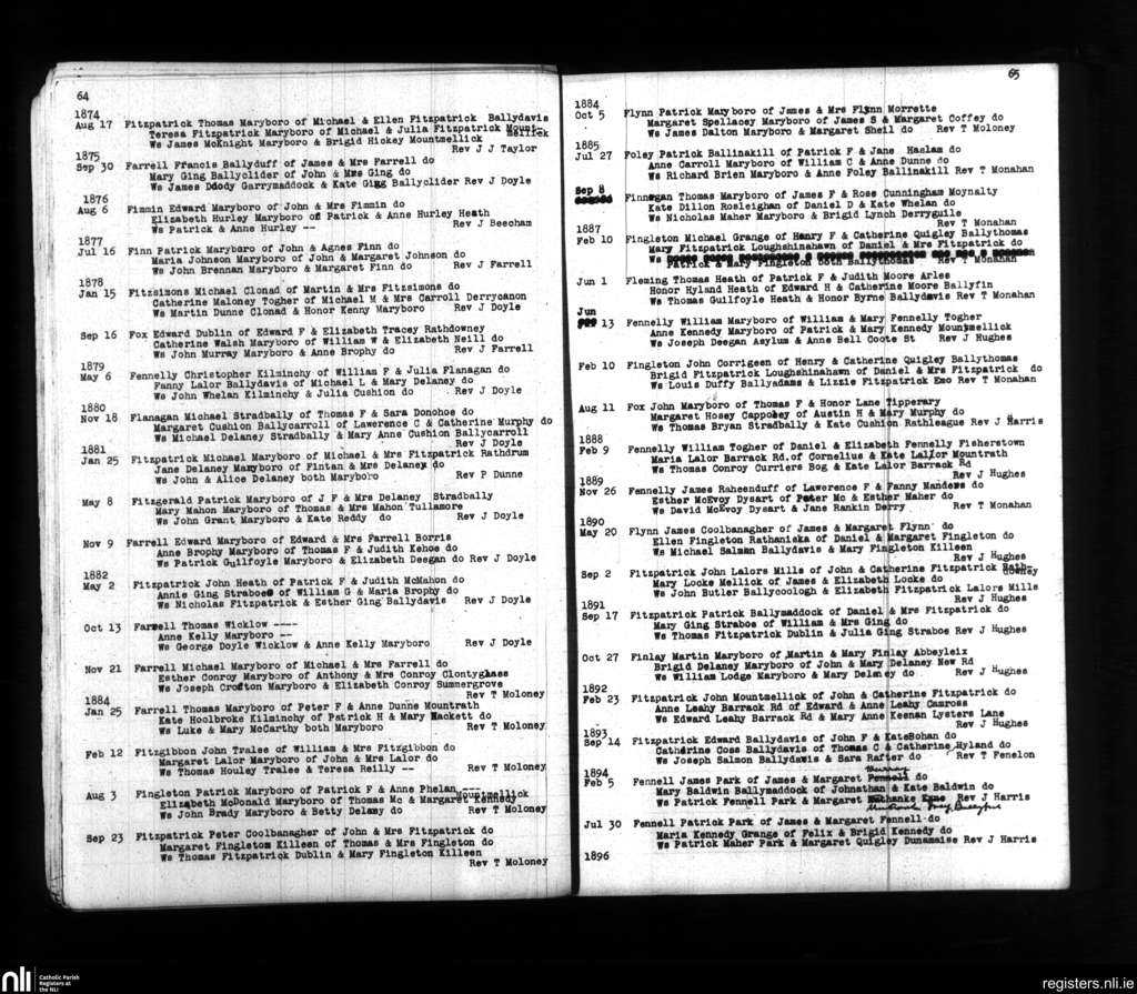 Maryborough; County of Laois; Diocese of Kildare and Leighlin. Marriages, Aug. 1874 to July 1894
