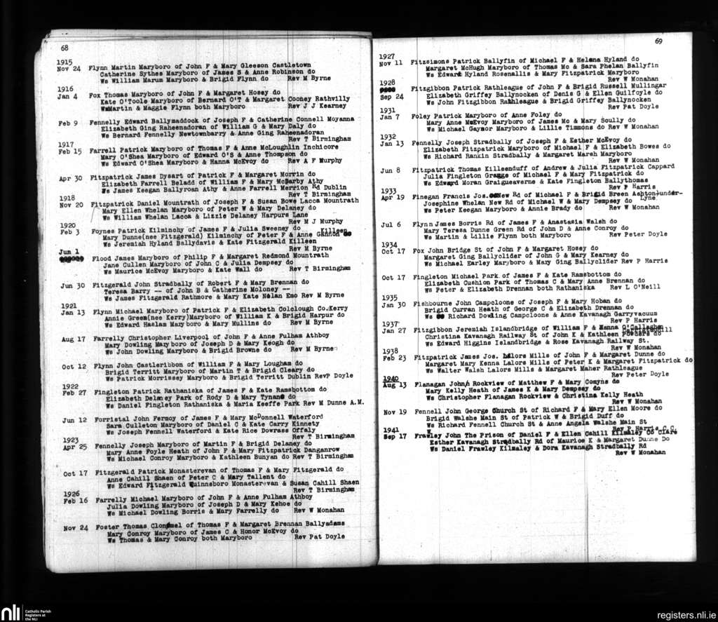 Maryborough; County of Laois; Diocese of Kildare and Leighlin. Marriages, Nov. 1915 to Sep. 1941