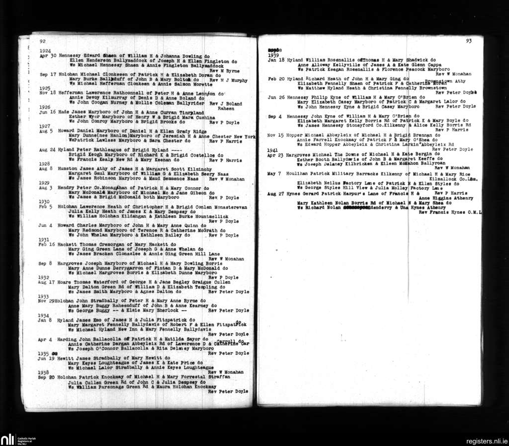 Maryborough; County of Laois; Diocese of Kildare and Leighlin. Marriages, Apr. 1924 to Aug. 1941
