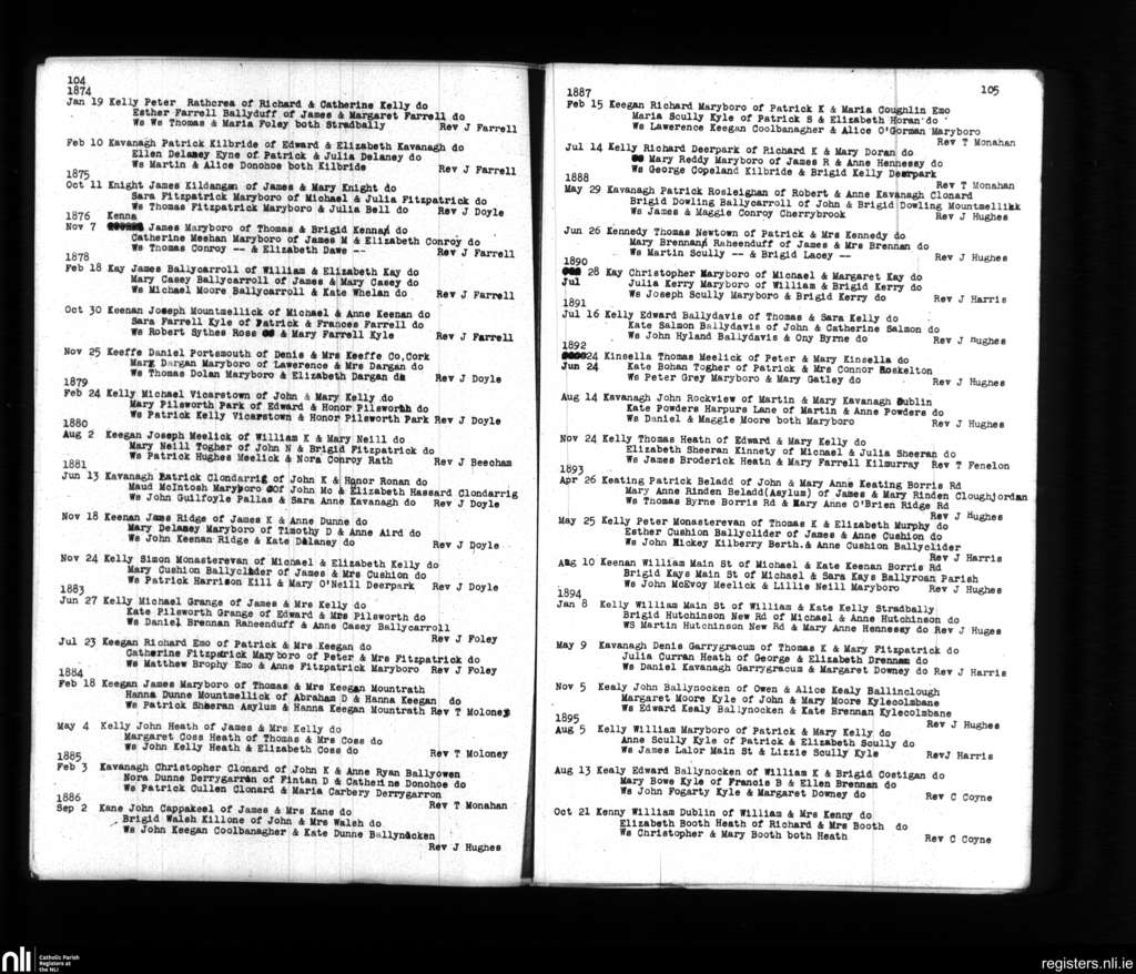 Maryborough; County of Laois; Diocese of Kildare and Leighlin. Marriages, Jan. 1874 to Oct. 1895