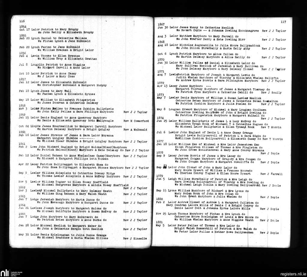 Maryborough; County of Laois; Diocese of Kildare and Leighlin. Marriages, Oct. 1854 to May 1881