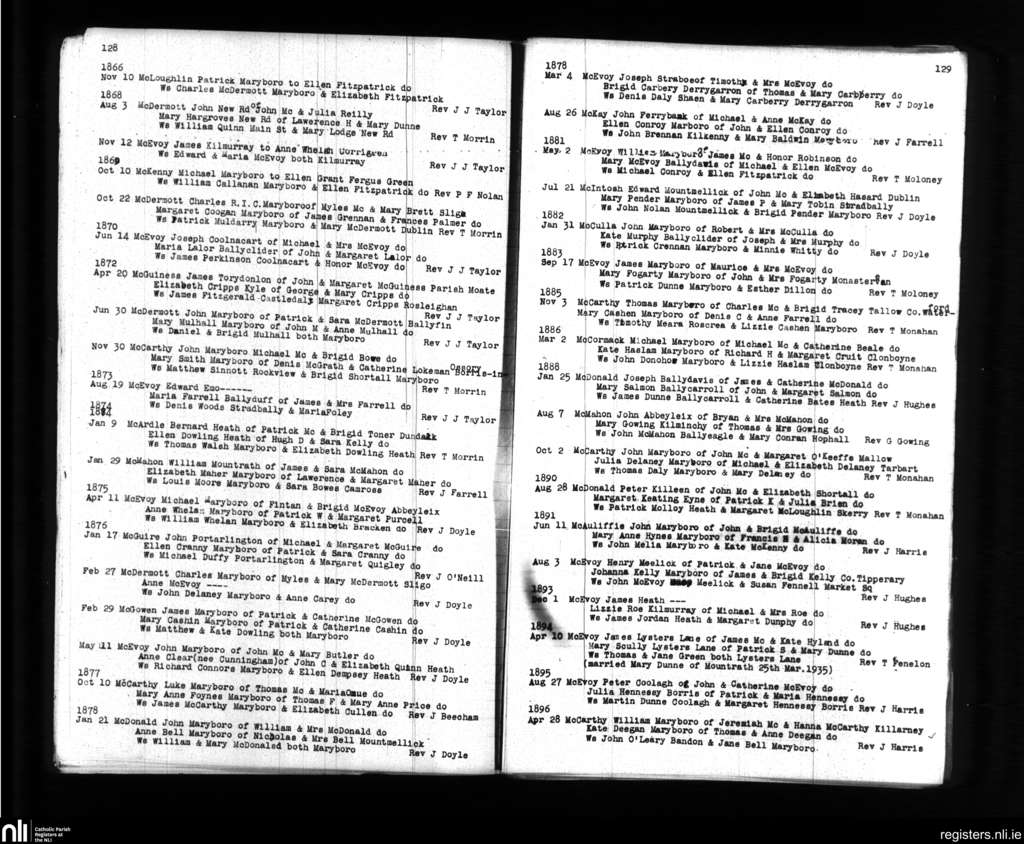 Maryborough; County of Laois; Diocese of Kildare and Leighlin. Marriages, Nov. 1866 to Apr. 1896
