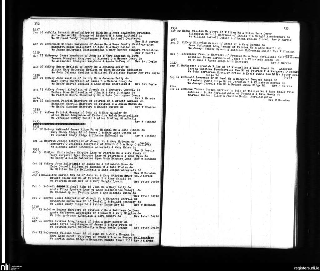 Maryborough; County of Laois; Diocese of Kildare and Leighlin. Marriages, Jan. 1927 to Feb. 1941