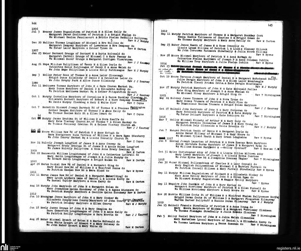 Maryborough; County of Laois; Diocese of Kildare and Leighlin. Marriages, July 1906 to Feb. 1919