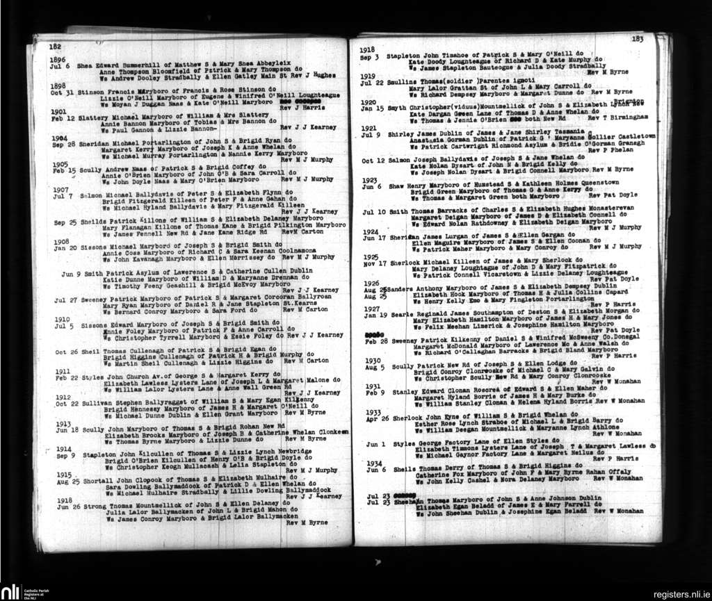 Maryborough; County of Laois; Diocese of Kildare and Leighlin. Marriages, July 1896 to July 1934