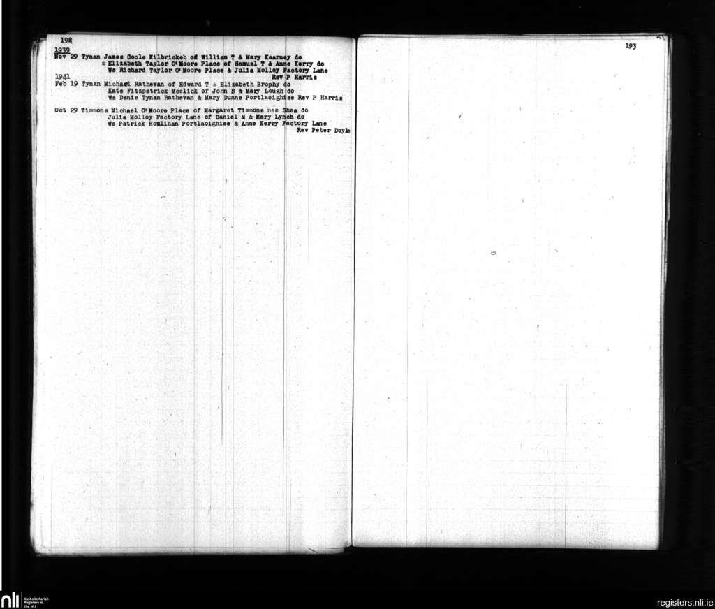 Maryborough; County of Laois; Diocese of Kildare and Leighlin. Marriages, Nov. 1939 to Oct. 1941