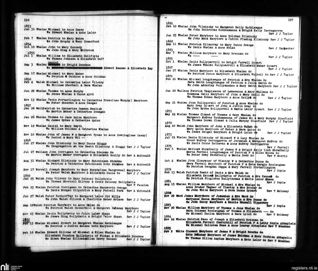 Maryborough; County of Laois; Diocese of Kildare and Leighlin. Marriages, Jan. 1853 to Feb. 1885