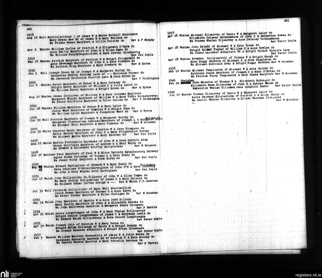 Maryborough; County of Laois; Diocese of Kildare and Leighlin. Marriages, Aug. 1918 to June 1942