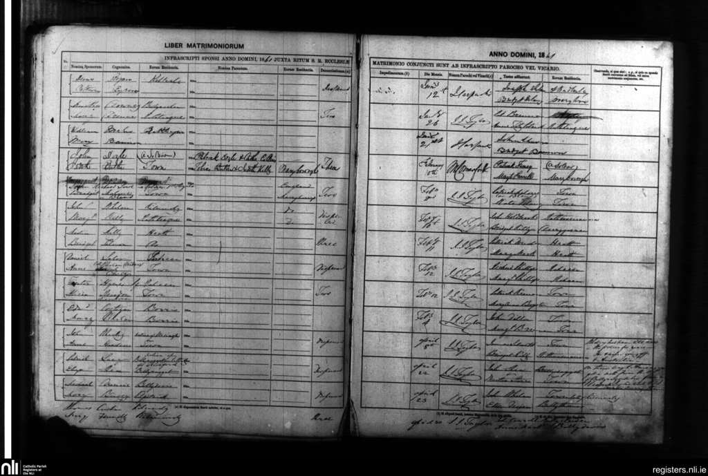 Maryborough; County of Laois; Diocese of Kildare and Leighlin. Marriages, Jan. 1861 to Apr. 1861