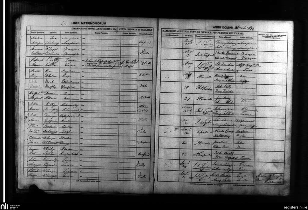 Maryborough; County of Laois; Diocese of Kildare and Leighlin. Marriages, Oct. 1863 to Jan. 1864