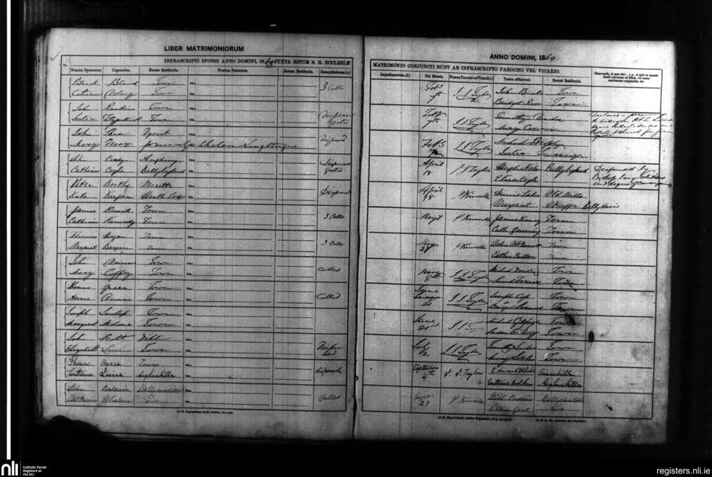 Maryborough; County of Laois; Diocese of Kildare and Leighlin. Marriages, Feb. 1864 to Sep. 1864