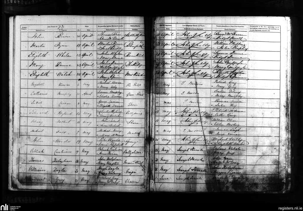 Maryborough; County of Laois; Diocese of Kildare and Leighlin. Baptisms, Mar. 1878 to Apr. 1878