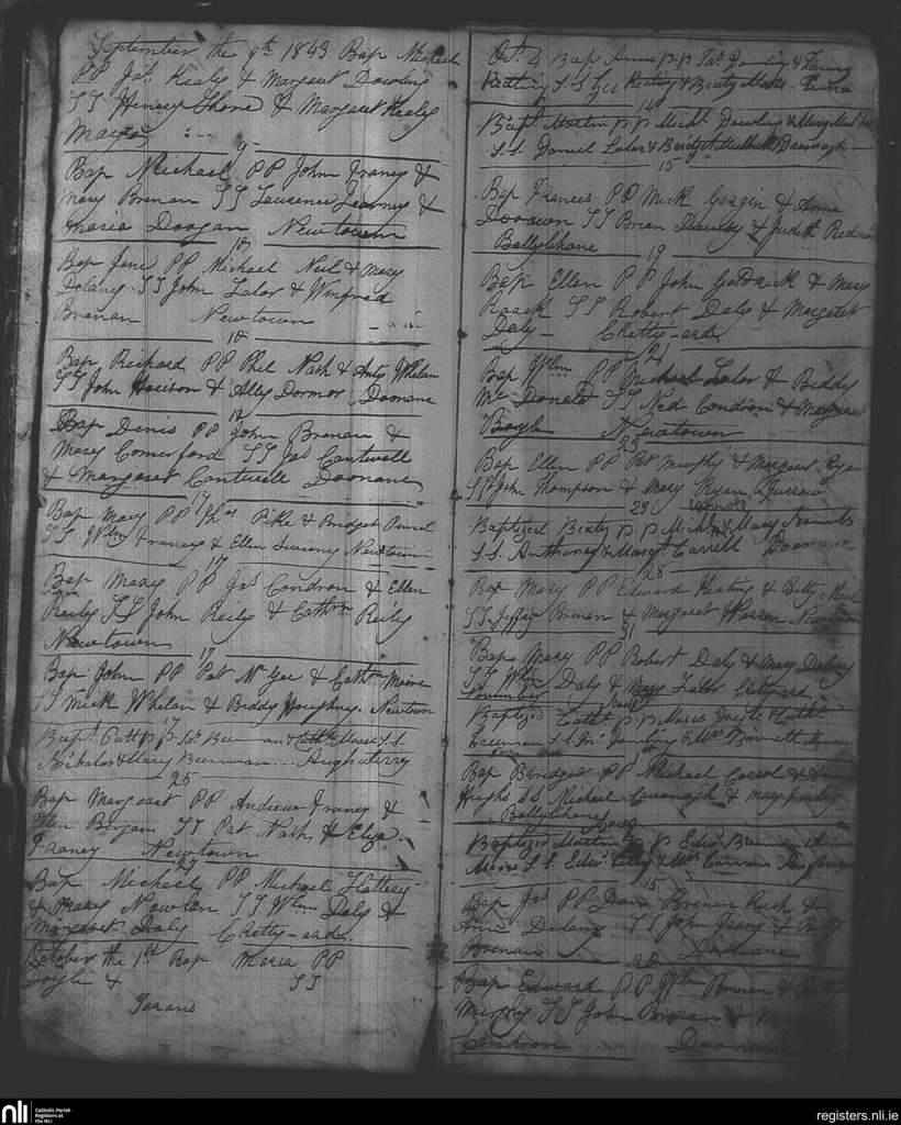 Mayo and Doonane; County of Laois; Diocese of Kildare and Leighlin. Baptisms, Sep. 1844 to Nov. 1844