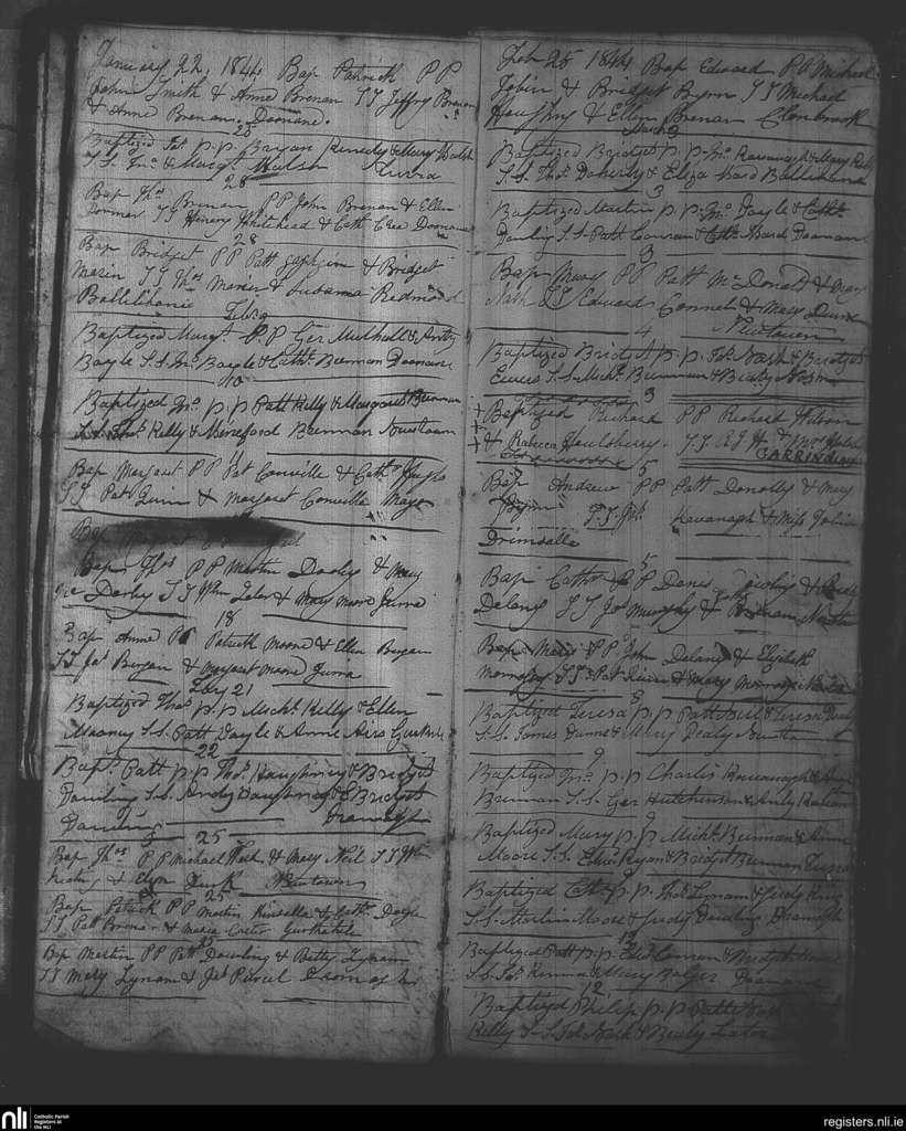 Mayo and Doonane; County of Laois; Diocese of Kildare and Leighlin. Baptisms, Jan. 1844 to Feb. 1844
