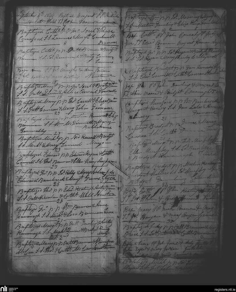 Mayo and Doonane; County of Laois; Diocese of Kildare and Leighlin. Baptisms, Sep. 1844 to Oct. 1844